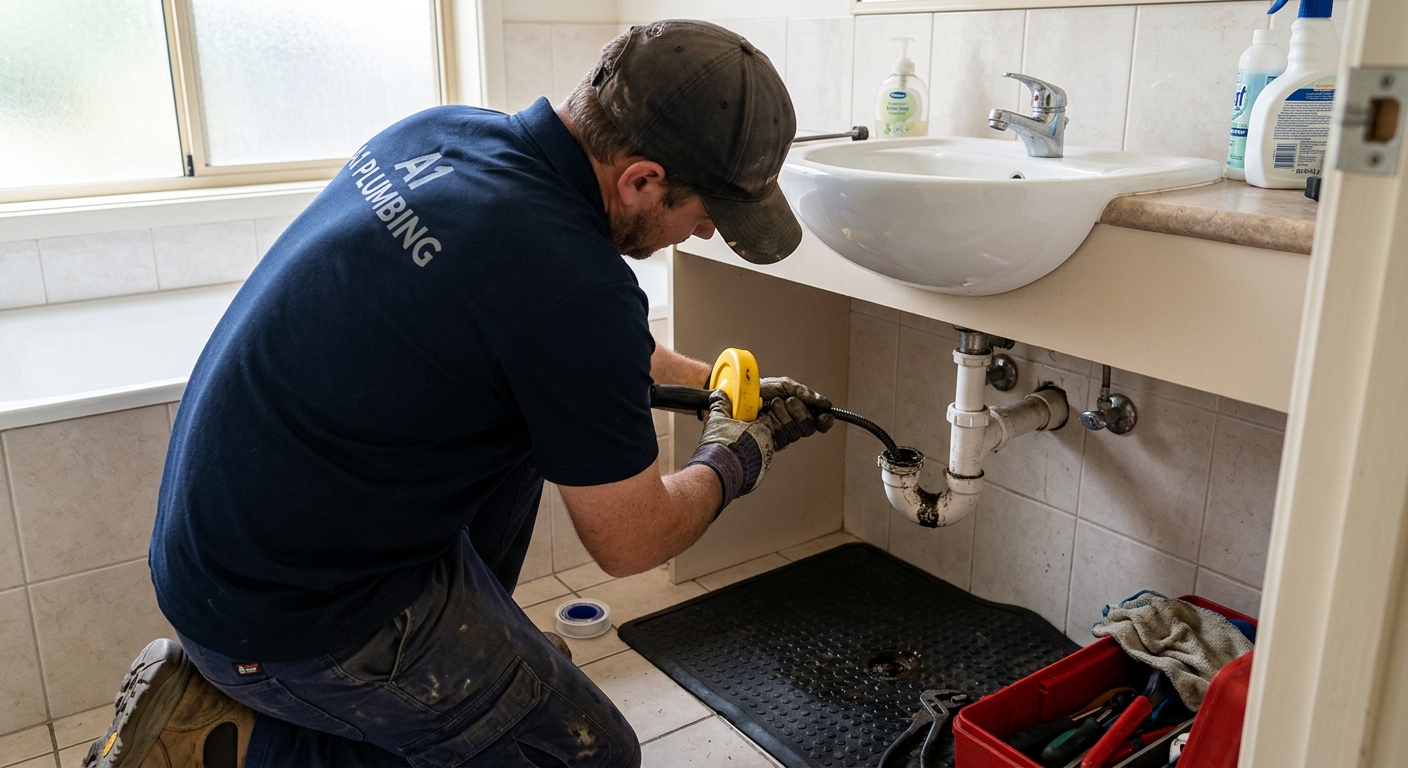 Professional drain cleaning for Benner homes — kitchen drains, bathroom clogs, main sewer line clearing. Motorized snake and hydro-jetting available. Camera inspection to diagnose root intrusion or pipe damage.