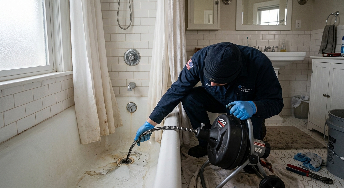 Professional drain cleaning for Falls homes — kitchen drains, bathroom clogs, main sewer line clearing. Motorized snake and hydro-jetting available. Camera inspection to diagnose root intrusion or pipe damage.